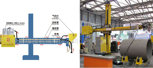 ★該設備省時、省料、省力、高效、環(huán)保,已廣泛使用于國內(nèi)外核電、風電、鍋爐、管道等各種筒體焊接時焊劑的回收、輸送。(小可用于300mm筒體內(nèi)回收焊劑)