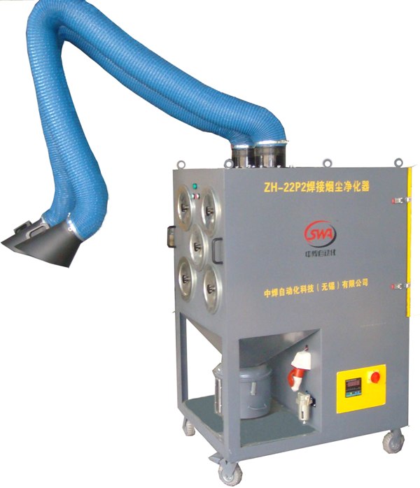 ★ZH-22P2型可移動式焊接煙塵凈化器用于焊接、拋光、切割、打磨等工序中產生煙塵和粉塵的凈化以及對稀有金屬、貴重物料的回收等,可凈化大量懸浮在空氣中對人體有害的細小金屬顆粒。具有凈化效率高、噪聲低、使用靈活、占地面積小等特點。